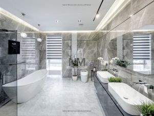 Благодаря удобной планировки на первом этаже просторная прихожая, большая гардеробная, гостиная с каминным залом, кухня/столовая, гостевая спальня / кабинет на первом этаже, гостевой санузел. Из кухни выход на крытую террасу с освещением. На втором этаже - 2 детские спальни, санузел с ванной. Хозяйская спальня с собственной гардеробной и санузлом. На мансардном этаже - кинозал/спортзал, комната отдыха, душевая, сауна.