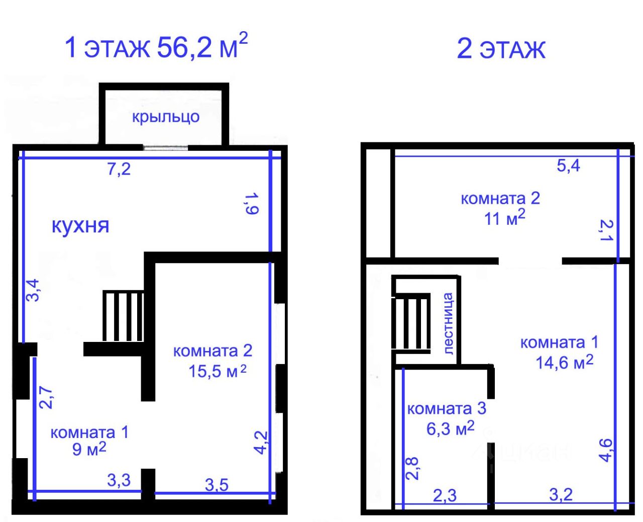 На втором этаже 3 комнаты 14,6 кв.м, 11 кв. м., 6,3 кв,м. (см. схему расположения).