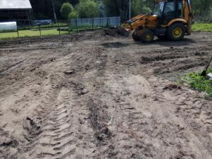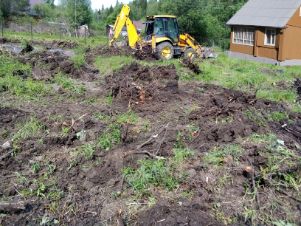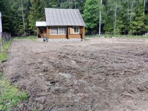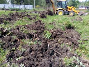На участк проведён комплекс мероприятий по улучшению ландшафта. Спил деревьев, корчевание, выравнивание под газон (см.фото).