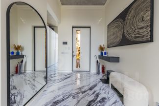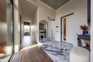 Планировка : холл, гардеробная, кухня-гостиная с выходом на террасу, гостевой санузел, постирочная с душевой, две гостевые спальни, два мастер блока со своими с/у и гардеробными и выходами на террасу.