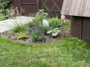 На территории обустроен декоративный пруд, цветники и огород с грядками в английском стиле. Высажены молодые плодовые деревья и кусты.