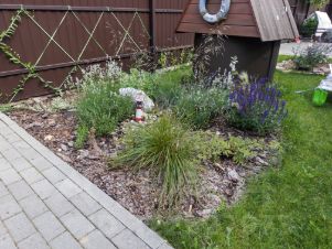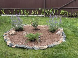 На территории сделаны две круглые площадки для скамейки и стола и для места у костра.