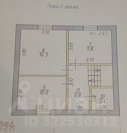 2 этаж - комната 9,8 кв.м., комната 14,3 кв.м., комната 10,0 кв.м., санузел с ванной 3,4 кв.м. лестничная площадка 6,8 кв.м.