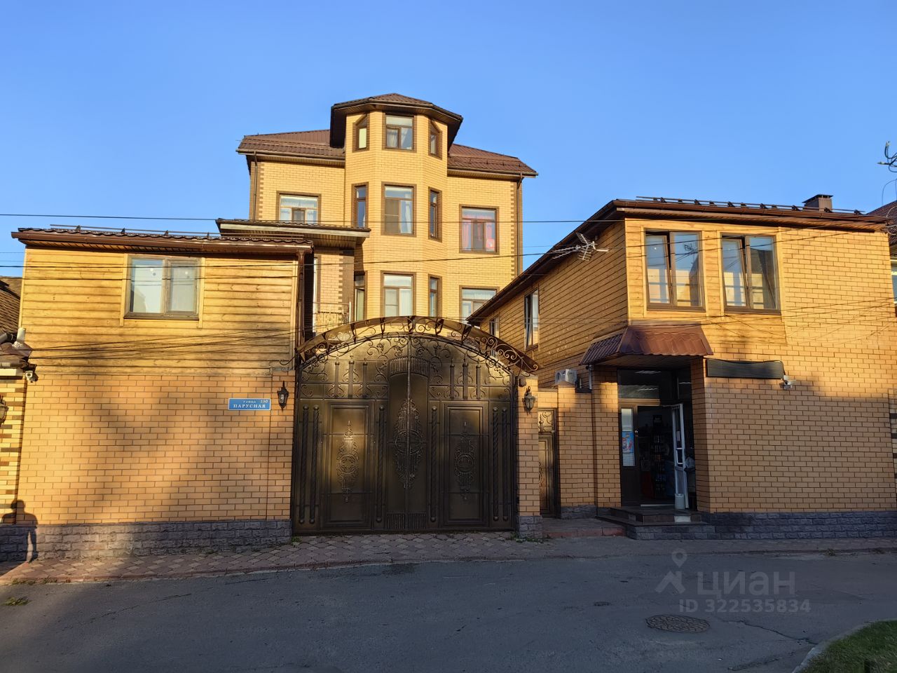 На территории также есть постройки: Гостевой дом, спортивный зал, котельная, хоз постройки (их площадь не учтена).