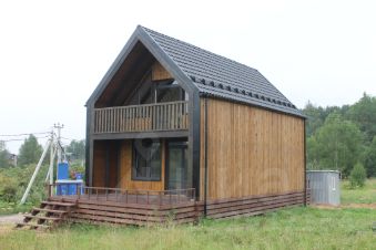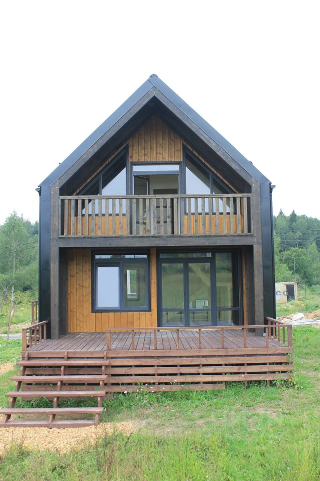 Стены и кровля утеплены PIR-панелями снаружи, фасад выполнен из дерева.