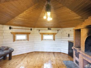 На 1-ом этаже расположены: кухня-столовая, гостиная с камином, две изолированные спальни, гардеробная, с/у с ванной, из кухни выход на крытую веранду. На первом этаже теплый водяной пол. Сауна с дровяной печью.