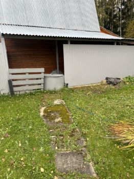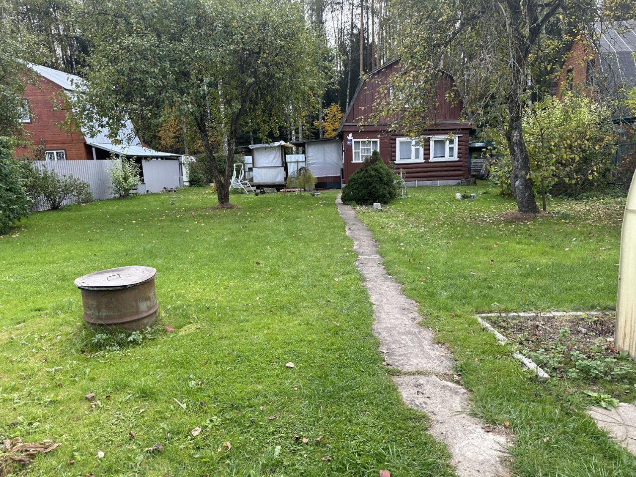 По периметру участка посажены декоративные растения и цветы, имеются плодовые деревья(яблони,слива, вишня и груша), а так же ягодные кустарники и газон. А еще приятный бонус, выход в лес с заднего двора.