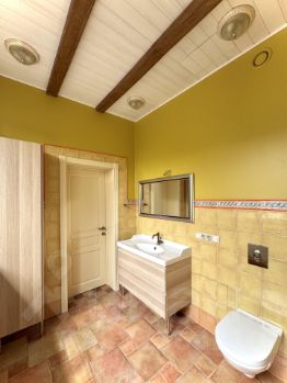 Внутренняя отделка дома: напольное покрытие - инженерная и паркетная доска, керамика итальянских производителей, сантехника Villeroy Boch, Grohe.