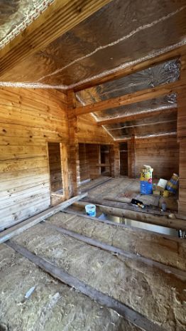Крыша: утепление минватой Rockwool 200 мм. Под металлочерепицей хорошая мембрана, под коньком установлен коньковый элемент чтобы не наметало снега. Изнутри дома дорогая пароизоляция (фольгированная). Водосточка, снегоудержатели, вентиляционные грибки.