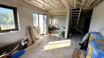 Внутренняя отделка первого этажа: стены оштукатурены.