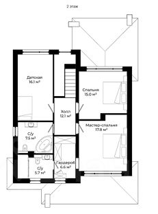 Второй этаж: 3 комнаты: мастер-спальня с гардеробом и санузлом, детская, спальня и с/у.