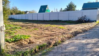 Участок огорожен с трех сторон, очищен и выровнен, имеет непосредственный съезд с дороги. На участке хорошая освещенность, нет замоканий, сухой, сохранена живописная яблоня.