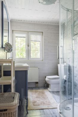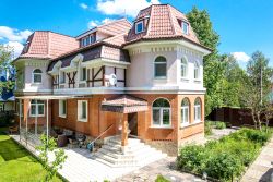 Дом 2009 года постройки, возведен по индивидуальному проекту для круглогодичного проживания. Все коммуникации центральные: водоснабжение, электричество, канализация, газ. Добротный дом, капитальной постройки, строился для себя, газобетонные блоки, обложен кирпичем, меж этажные перекрытия железобетонные, свежий ремонт. Асфальт до ворот участка.