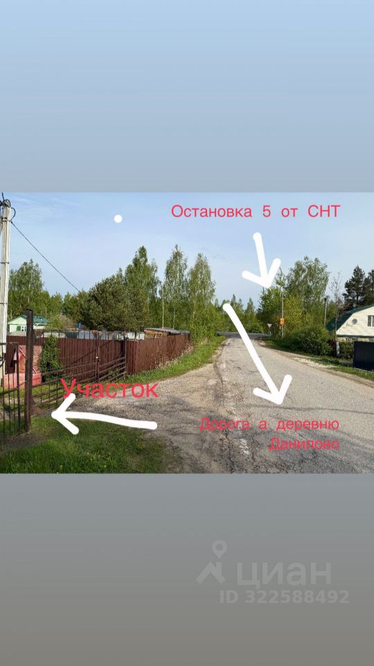 Арт. 62198363 Продам участок в СНТ в деревне Данилово площадь 9 соток .Ровный , очищенный , остановка через дорогу.