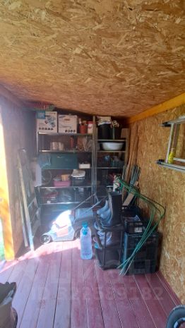 - Новый сарай 6х3 оснащен металлическими стеллажами
