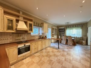 1 этаж: прихожая, холл, гостиная с дровяным камином, кухня-столовая, терраса с зимним садом, кладовая, бассейн, сауна, с/у, гараж на два автомобиля.