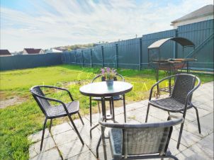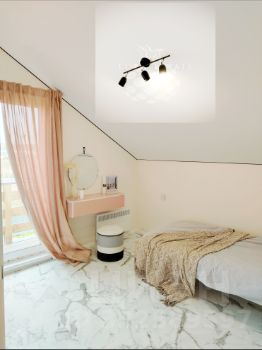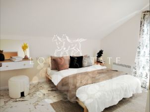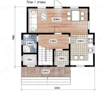 На 1-м этаже: большая гостиная с французскими окнами, кухня, прихожая, санузел, техническая комната. При необходимости возможно возвести перегородку и создать дополнительно спальню.