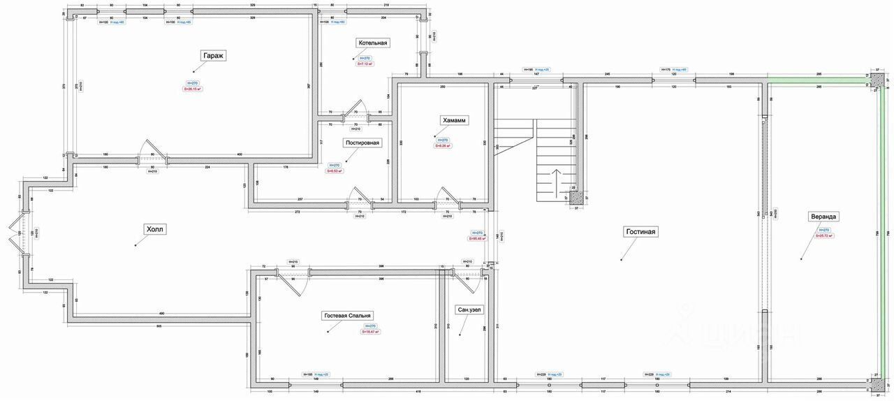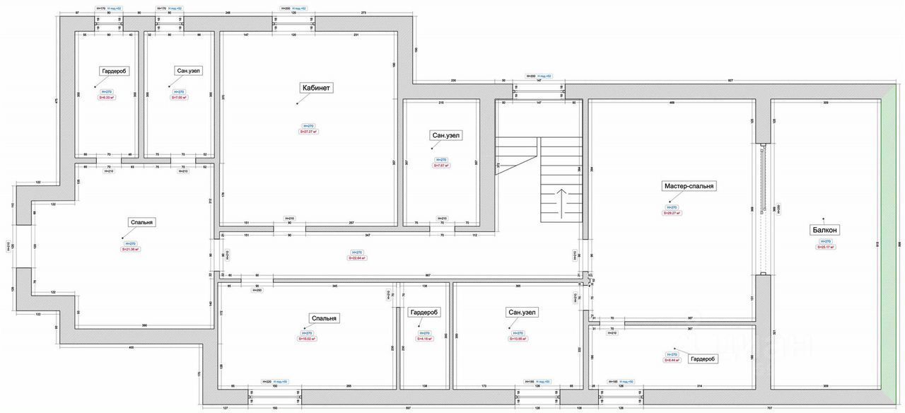 Высокие потолки 3,5м, 2 мастер-спальни на втором этаже. 2 гостевые спальни, просторный кабинет, гостиная 56м2.