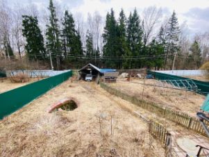 Участок: правильной формы, соседи с двух сторон, с выходом в лес, огорожен со всех сторон. На нем расположены: баня с лежанками и комнатой отдыха, беседка, хоз блок, декоративный пруд в виде сердца, парковочное место с навесом (так же перед домом гостевая парковка на два автомобиля), клозет, септик.
