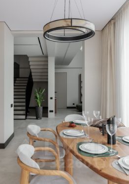 Элегантная сдержанность дома скрывает великолепный интерьер, который наилучшим образом характеризует индивидуальность своих владельцев дому присущи Легкость, Лаконичность, Солидность, Функциональность и Топ-дизайн!