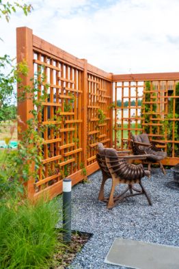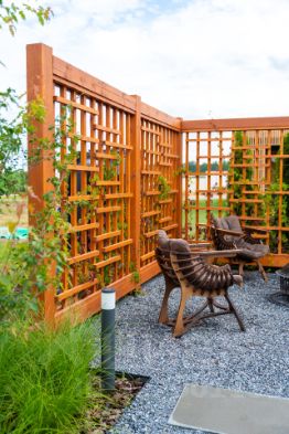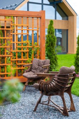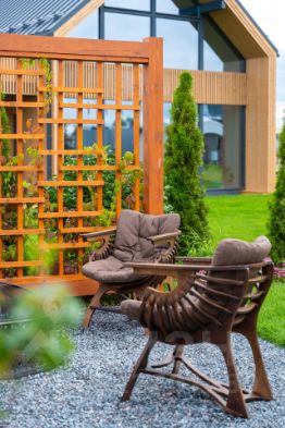 * Ландшафт: предусмотрено место для гриля, где можно наслаждаться трапезой на природе. Ландшафтный дизайн превращает участок в оазис, а уединенный уголок в левом конце сада создает идеальное пространство для спокойного общения, чтения или медитации.