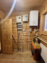 На участке в 4 сотки (участок отсыпан, двор сухой) уже имеются все необходимые коммуникации: электричество 15 кВт, газ (подведен к участку), канализация (био септик) и водоснабжение от колодца. Для обеспечения тепла в доме предусмотрено комбинированное отопление. Металлочерепичная кровля гарантирует долговечность и защиту от неблагоприятных погодных условий. При этом участок не требует значительных вложений.