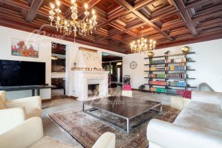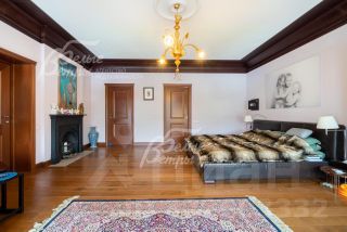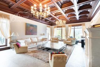 Код объекта в БД Агентства: 170-109. Левитан КП. Коттедж красивой архитектуры в элитном коттеджном поселке, расположенном на берегу реки Пахра в окружении леса. Высокое качество строительства, материалы премиального сегмента: много элементов из массива дуба (кессоны, лестница, аквариум,карнизы, подоконники, двери, окна, полы). Два английских камина с отделкой итальянским розовым мрамором. Облицовка фасада из немецкого клинкерного кирпича. Отличная планировка с богатым функционалом: 5 просторных спален, квартира персонала, кинотеатр, игровая, спортзал. Есть банный комплекс с дровяной печью и джакузи. Огромная крытая беседкка барбекю, а также уникальная беседка с прудом вокруг. Красивый ландшафт со взрослыми деревьями. Клубный поселок со строгой охраной, центральными коммуникациями и обустроенной набережной реки Пахра.