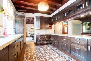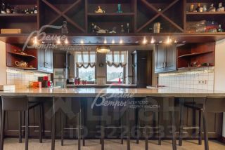 Мебель, оборудование: • Кухня полностью из массива. Гранитная столешница с вкраплениями граната, общая длина около 9 м, техника GAGGENAU (Франция, премиальный сегмент).