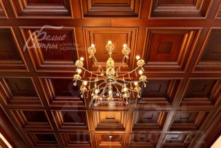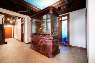 • Много столярки из дуба: кессоны в холле, гостиной, столовой, санузле, мастер-спальне, потолок на крыльце, лестница, отделка аквариума.