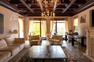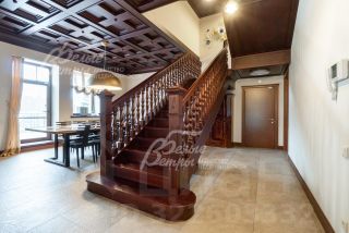 Описание внутренней отделки: дизайнерская отделка в классическом стиле. Авторский дизайн узора столярки, лестницы, витражей, метлахской плитки, роспись над аквариумом. Все материалы использованные в отделке премиального уровня.