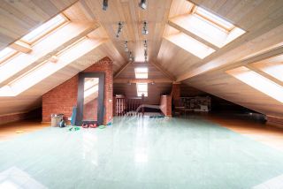 Стены в доме окрашены, стена между игровой и кинотеатром из кирпича ручной формовки. Пол на первом этаже - керамогранит с водяным подогревом, на 2м этаже дубовая доска. Потолки в спальнях подвесные ГЛК. Мансарда, игровая и кинотеатр отделаны лиственницей. Лестница на бетонном основании шириной 1.1 м, отделана дубом. Двери деревянные (Италия UNION-BARAUSSE), подоконники деревянные широкие, из массива дуба. Сантехника Villeroy&Boch. Есть джакузи..