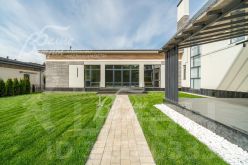 Благоустройство участка: выполнен парковый проект ландшафтного дизайна, выложена тротуарная плитка (BRAER) на железобетонном основании, высажены туи, профессиональный газон. Организовано ночное освещение. На участке есть открытая парковка на 4 автомобиля, установлены распашные электрические (автоматические) ворота и отдельная калитка с видеодомофоном и электронным замком. Выполнено водоотведение с кровли дома и бассейна в дренажную систему.