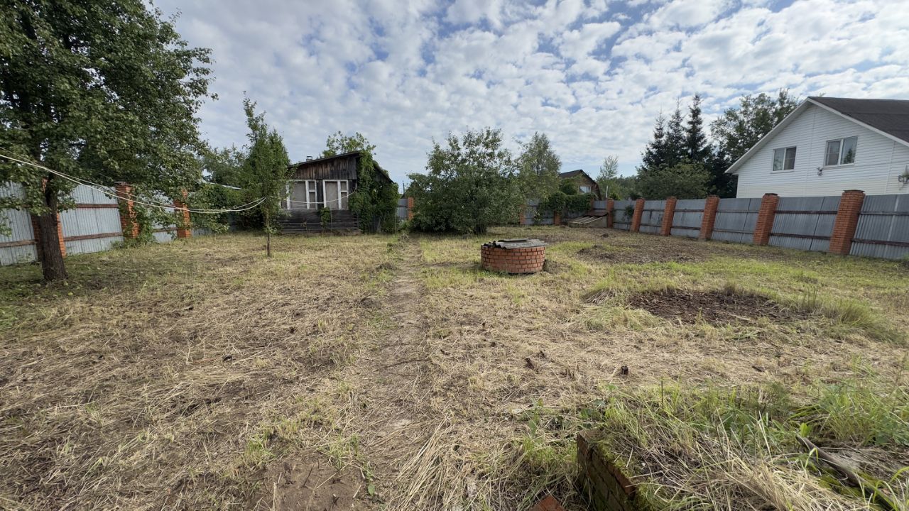 В продаже ровный участок, огорожен забором из оцинкованного проф настила на бетонном основании с кирпичными столбами.