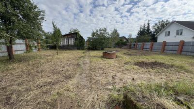 Фундамент блочный бетонный с перекрытиями для дома 7,5 метра Х 10 метров. Установлен септик с выходами в дом и баню, трехкамерный с колодцем на конце. Также имеется кирпичный навес 5Х12 метров с установленным внутри металлическим закрывающимся полу-контейнером. От входа мимо бани и колодца к компостной яме проложены бетонные дорожки. На участке есть плодовые деревья и кусты. Электричество подведено и зарегистрировано в Мосэнергосбыте. Водопровод на участке летний СНТ и питьевая вода в колодце.