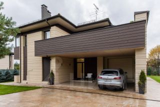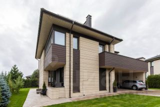 Просторный кирпичный дом с дизайнерской отделкой площадью 285 м² расположен на земельном участке 12 соток.