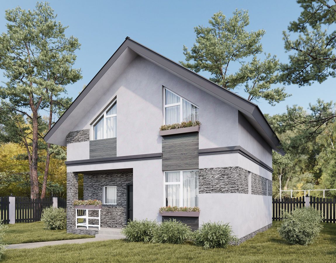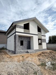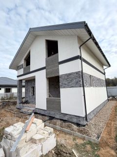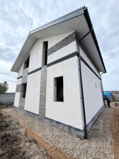 Современный двухэтажный дом с мансардой площадью 130,4 м2 находится на финальной стадии - ожидается монтаж окон!