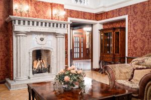 • Подоконники, столешница на кухне, лестница, камин и полы выполнены из натурального мрамора
