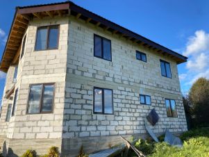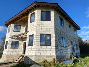 Дом двухэтажный: первый этаж кухня гостиная, 3 спальни, санузел. Второй этаж 3 спальни, гостевая комната, строили по индивидуальному проекту.