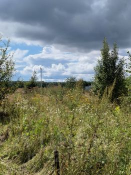 Участок с небольшими деревьями и кустарниками, можно сразу начать строительство.