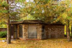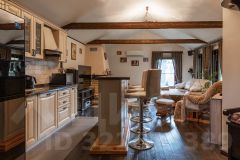 Деревянный одноэтажный дом для отдыха: Общая кухня - гостиная с барной стойкой и камином, С/У. Может использоваться, как дом для гостей.