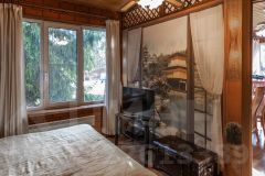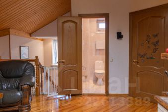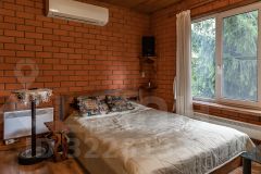 Деревянный гостевой домик над гаражом: 1 комната с двухспальной кроватью и с/у с душевой кабиной.