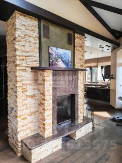 - совмещённая кухня-столовая-гостиная с камином;