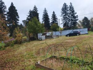 Для хобби и хозяйства: Теплица для ранних овощей, вольер для питомца, дровник и ухоженный сад с декоративными деревьями.