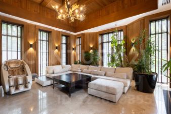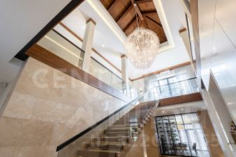 Трехэтажный загородный дом премиум-класса в охраняемом лесном посёлке — идеальный дом для тех, кто ценит роскошь и комфорт! Особенности дома: Современная архитектура и дизайнерская отделка из натуральных материалов: травертин, ценные породы дерева, мрамор. Элегантная "парящая" лестница и высокие потолки с авторской люстрой создают ощущение простора и роскоши. На первом этаже спланированы: гостиная с каминной зоной, просторная кухня оснащенная премиальной техникой, столовая, кабинет, гостевая комната, барная комната с караоке с выходом на террасу, переливной бассейн с гидромассажем и противотоком, баня, 3 с/у. На втором этаже расположены : мастер спальня с ванной и гардеробной и выходом на террасу. 2 детские комнаты, с/у. На цокольном этаже расположены: кинозал, бильярдная, тренажерный зал, постирочная, с/у. Мощная инженерия включает центральную приточно-вытяжную вентиляцию, систему "Умный дом" и резервный газовый генератор. Внутренний двор и терраса на эксплуатируемой кровле — идеальные места для отдыха и развлечений. Ландшафт и участок: Участок с взрослыми деревьями, цветниками, огородами, теплицей и системой автополива. Во дворе закрытая просторная беседка с зоной кухни и барбекю. Собственный выход в лес — для прогулок и отдыха на природе. Этот дом — идеальное сочетание роскоши, уединения и современного комфорта. Арт. 119186984