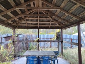 Так же на участке построена открытая беседка на бетонном основании. Установлен стационарный мангал с крышей.