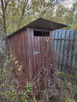 Жилая утепленная бытовка с двумя комнатами, свет подведен. Летний душ (стены хоз. постройки утеплены) и туалет на участке.