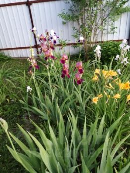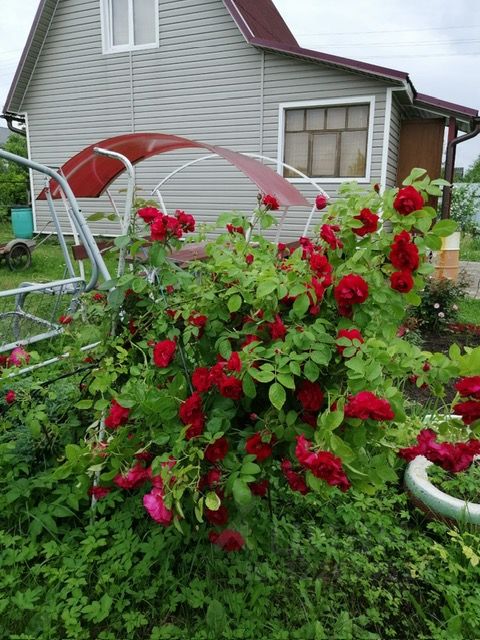 На участке есть ещё старенький домик, две теплицы, скамейки, качели. Участок огорожен металлопрофилем, сеткой-рабицей. Есть въездные ворота, калитка. Участок зеленый, с дорожками, посажены туи, садовые и плодовые посадки, розы, гортензии и другие цветы. Соседи-приветливые люди.