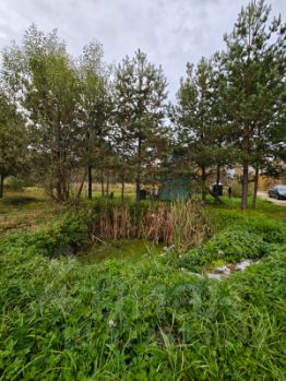 На участке сохранены взрослые сосны, есть небольшой пруд, создающий атмосферу уюта и уединения.