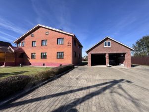 Продается кирпичный жилой дом на участке 19,57 сотки. На участке также расположен гостевой дом с баней из бруса (2 этажа, S - 80,9 кв м) и гараж площадью 70 кв м.