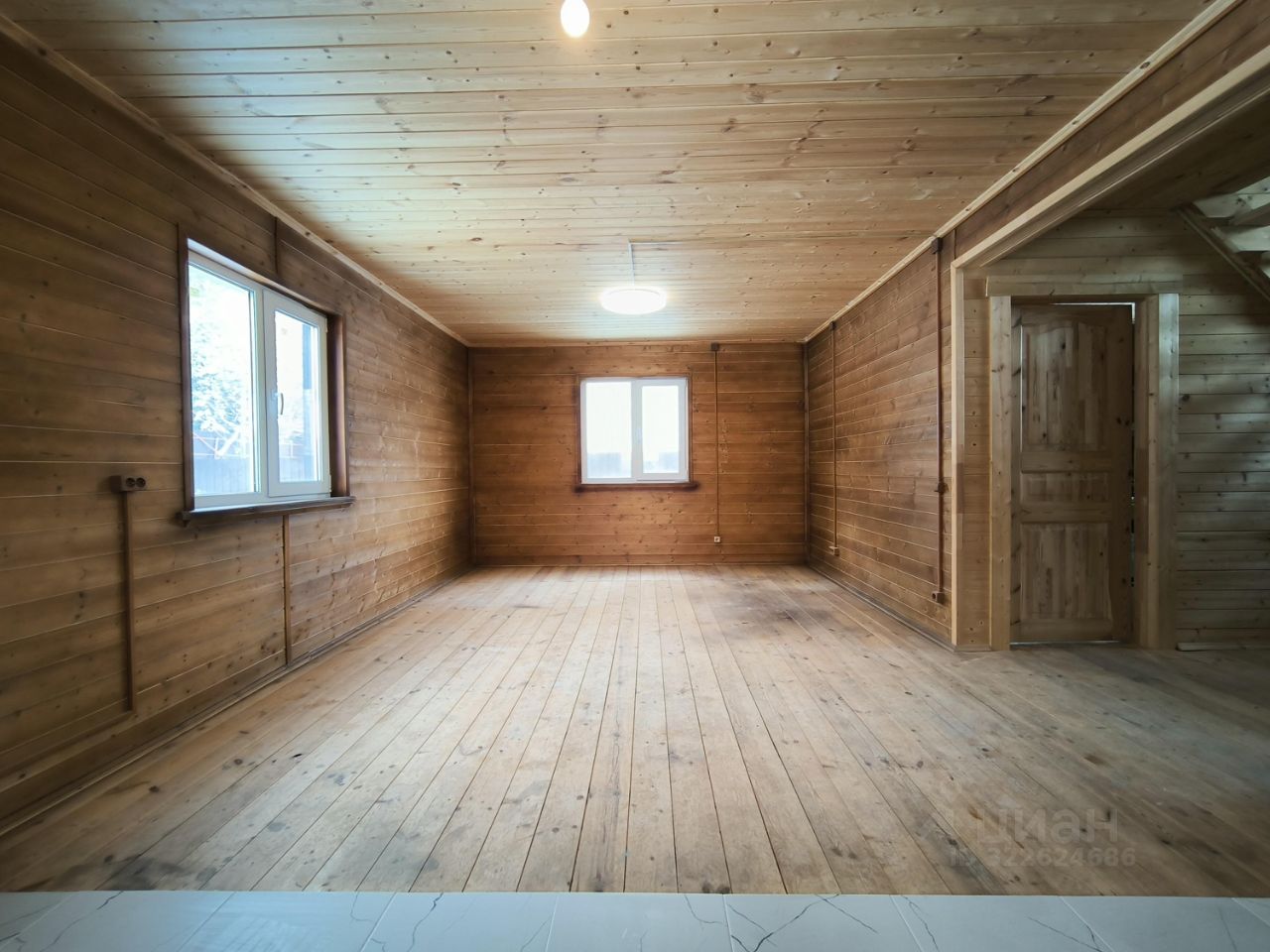 Кухня-гостиная, подготовленная к установке кухонной зоны с холодильником и посудомоечной машиной, с возможностью сделать дополнительный выход при постройке террасы;